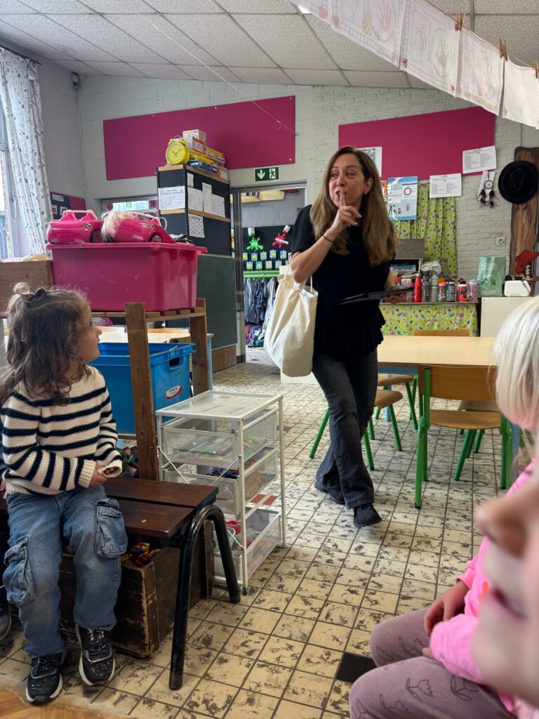 Dans notre école, nous invitons les parents, oncles, tantes, grands-parents,… qui maîtrisent une langue étrangère à venir partager, lorsqu’ils le souhaitent, une histoire, un conte, une poésie,… dans leur langue maternelle. Une expérience riche et appréciée de tous.