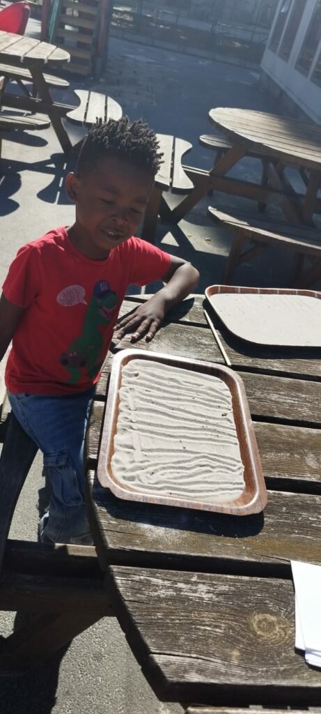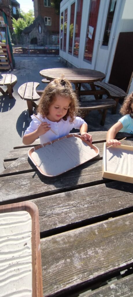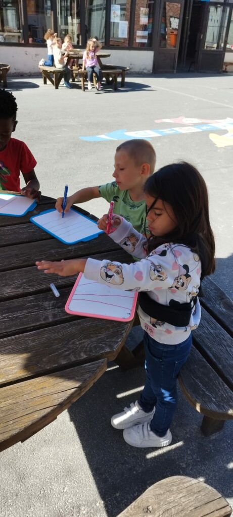 Nos apprentissages… La ligne n’aura plus de secret pour eux ! Travail en classe Nous travaillons la ligne dehors aussi, au soleil !